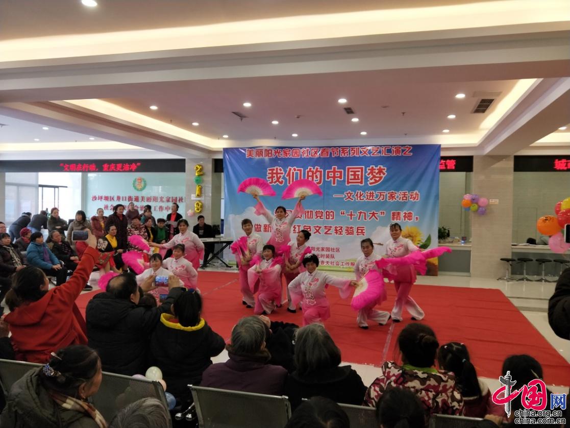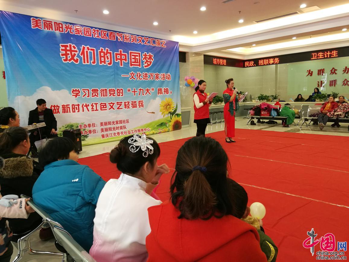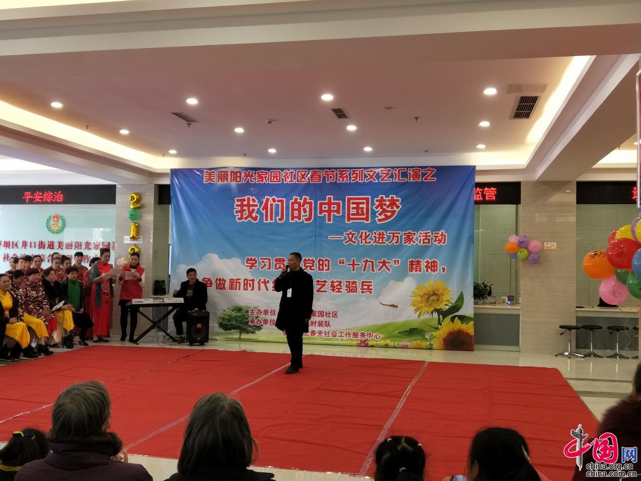 中国网2月1日讯(作者 付恋) 婀娜多姿的时装秀,欢腾喜庆的舞蹈,悦耳动听的歌声…… 1月31日,一场以“我们的中国梦之文化进万家”为主题的迎新年活动在重庆市沙坪坝区井口镇美丽阳光花园社区举行。