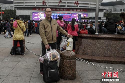 资料图:在重庆北火车站进站口等待的乘客。中新社记者 张浩 摄