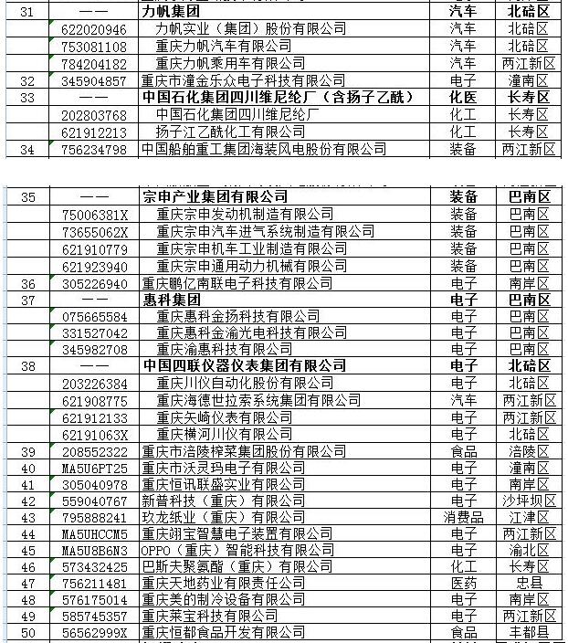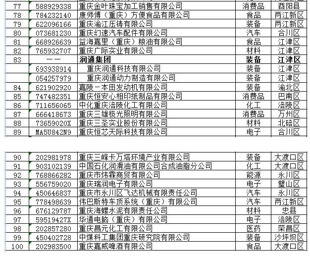 近日,重庆市经济信息委按照“质量第一、效益优先”和“发展前景好、增速快、后劲足”的原则,在综合考量企业资产、主营业务收入、营业利润、税收等指标基础上,确定了2018年度100户重点工业企业和100户成长型工业企业(下称“双百企业”)。