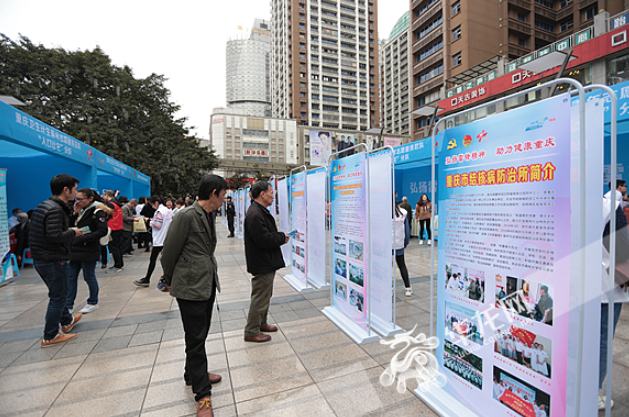 “老人家,你血压有点高,平时注意情绪莫激动哦。”今(5)日,在九龙坡区杨家坪步行街,卫生志愿者帮助一名老人测量血压后,轻声嘱咐。在第55个学雷锋纪念日之际,重庆市卫生计生委、团市委联合开展“弘扬雷锋精神 助力健康重庆”卫生计生志愿服务月示范活动,30余家卫生计生机构的50多名医务工作者和近百名志愿者现场为市民提供义诊和健康咨询服务。