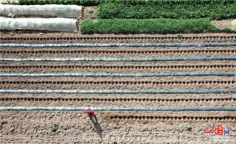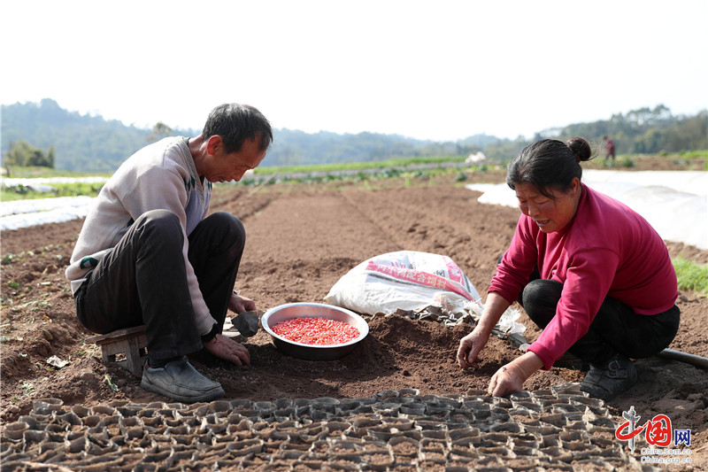 [6]2018年3月8日,四川省华蓥市明月镇竹河村的菜农,在利用紧邻渠江的荒滩地发展起来的无污染蔬菜种植基地播种甜玉米。特约摄影邱海鹰 摄