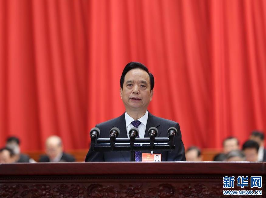 3月13日,十三届全国人大一次会议在北京人民大会堂举行第四次全体会议。受十二届全国人大常委会委托,全国人大常委会副委员长李建国向十三届全国人大一次会议作关于中华人民共和国监察法草案的说明。(图片来自:新华网)