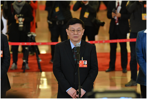 全国政协委员王建业在“委员通道”答记者问。 人民网记者 于凯摄