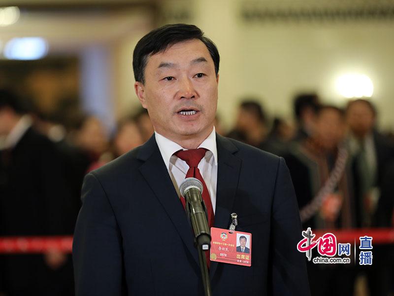 3月15日,全国政协十三届一次会议在北京举行“委员通道”采访活动,全国政协委员、大庆油田铁人钻井队队长李新民接受采访。中国网 董宁 摄
