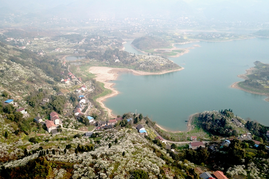2018年3月14日,依托李子产业走上致富之路的四川省华蓥市天池镇仁和村星落棋步的农家小洋楼, 在漫山遍野如雪的李花掩映下显得格外美丽祥和(特约摄影邱海鹰 摄)