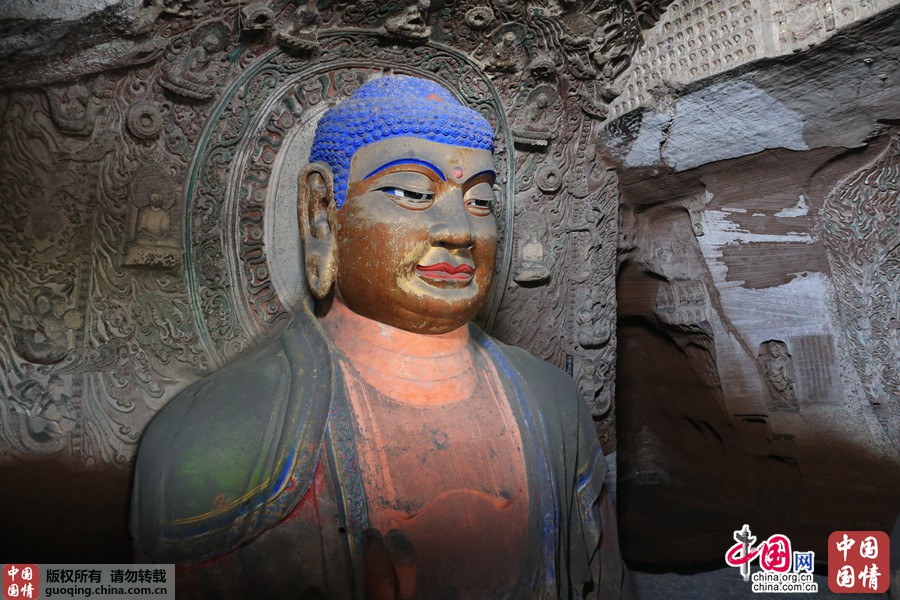 大佛窟内主尊大佛头高5.2米,手指高2米