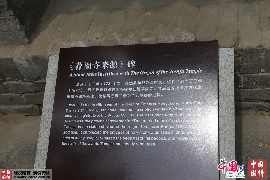 《荐福寺来源碑》位于今小雁塔地基前西侧