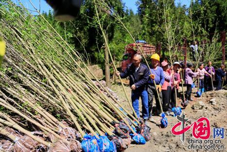 4月2日,四川省广安市的干部群众在华蓥山中段李子垭搬运即将栽植的银杏树苗