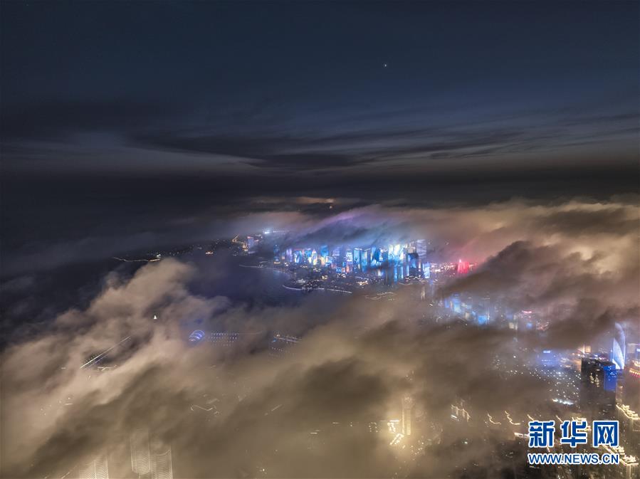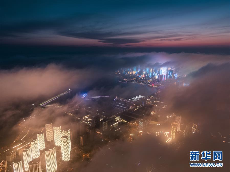 青岛现平流雾美景 雾气营造出流光溢彩的景观