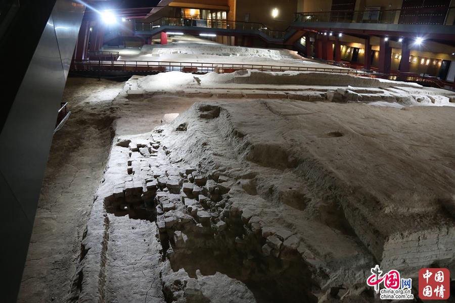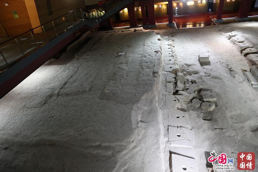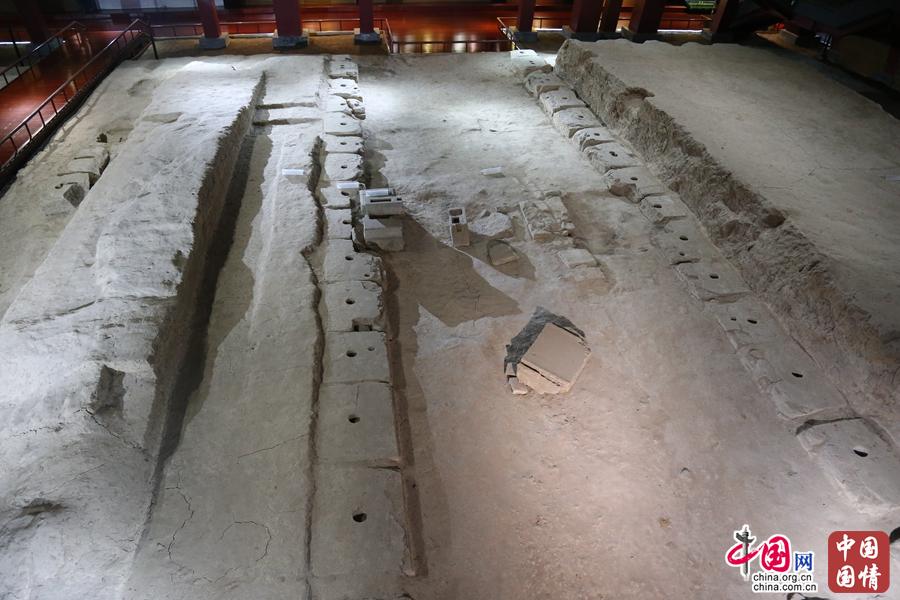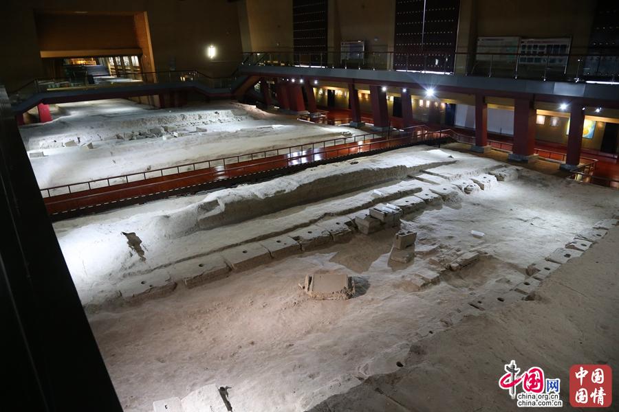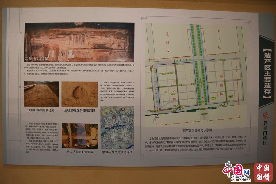 定鼎门遗址,是隋唐和武周时期都城洛阳城外郭城正门,隋初名建国门,唐时更名定鼎门,位于隋唐洛阳城中轴线上。隋炀帝营建东都洛阳,次年迁都洛阳,成为第一个通过定鼎门的皇帝。之后,定鼎门相继被唐、后梁、后唐、后周和北宋定为洛阳外郭城正门,直到北宋末年,才逐渐废弃,定鼎门作为郭城南垣正门的时间长达530年,是迄今为止我国发现沿用时间较长的古代都城城门。隋唐洛阳城定鼎门遗址保护展示工程,是国家文物局确定的大遗址保护首批重点项目之一。工程总投资4000多万元,于今年初正式开工建设。新落成的遗址博物馆,位于洛阳新区古城路北、隋唐遗址植物园东南,分地下一层、地上两层,总建筑面积12616平方米,建筑高度约28米。其中,地下一层为原址展示,展示考古发掘出的定鼎门遗址门道、柱础石、城墙等。地面两层为博物馆,展示定鼎门遗址的演变历史和考古发掘中出土的部分文物。