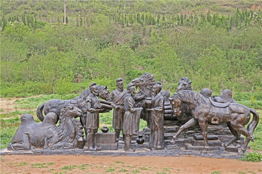 汉函谷关景区内胡商雕塑惟妙惟肖