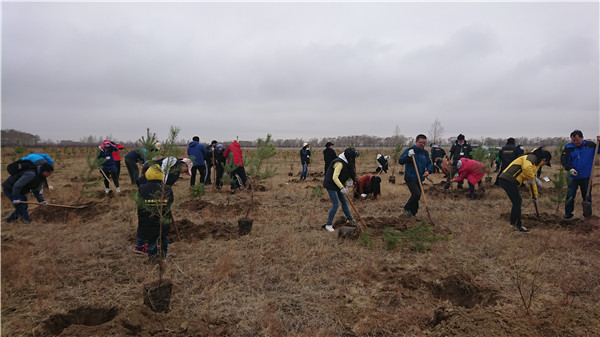 志愿者齐心为地球添笔绿