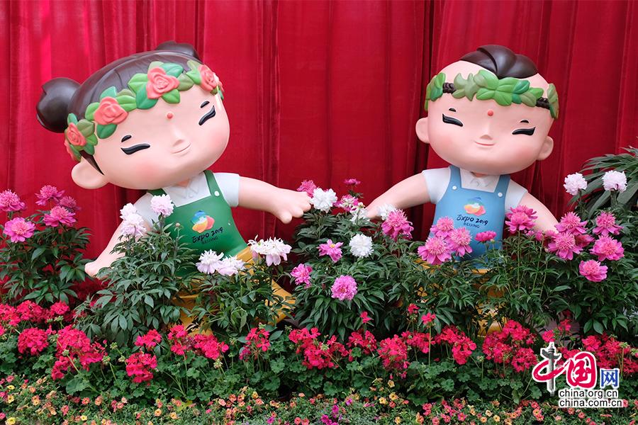 本次展会室内面积2500㎡,室外面积2000㎡。室内展区分为世园主题区、国际合作企业区、主题造景区、家庭园艺区、讲座交流区五个展区,室外展区主要为品种试种对比。进入室内展示区,首先看到的是以海坨山、冠帽山、妫河为大背景的世园花卉应用展示,让观众可以提前一睹世园花卉风采。展示区中轴线方向,首先是以神奇美丽的“万花筒”为主题的大型花卉造景。当观众在一个个美丽奇妙的隧道中穿行时,步移景异,不同品种的植物加上巧妙的搭配组合,可以呈现出千变万化的面貌和姿态。“迷宫”展区,游客可以零距离进入花坛观展,增强了参与的趣味性。中轴线末端,是一组以“瑞犬纳福-你旺我旺”为主题的大型立体花坛。在城市地面不停被挤压的现代社会,绿化空间化、立体化是未来的趋势。不停地寻找适合立体绿化的新材料、新工艺、新设计是北京市花木公司园艺工作者们孜孜不倦的追求。