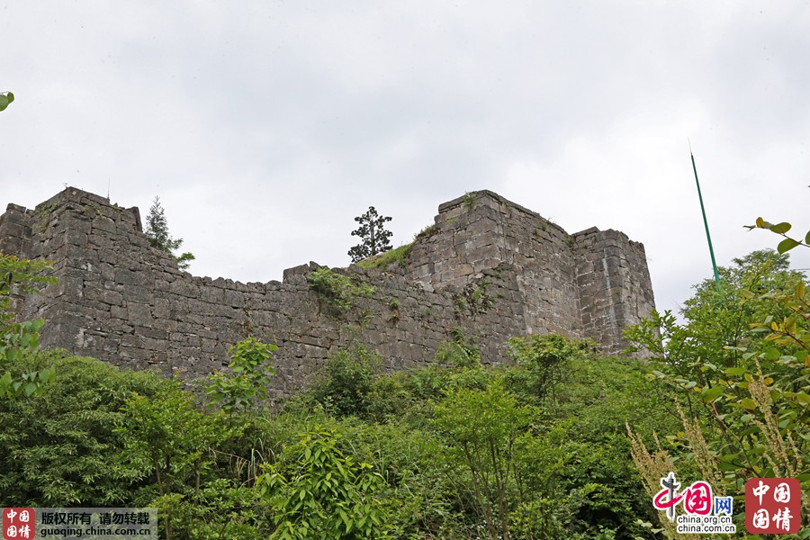 朝天关从未被毁完的残壁石门可看出,这座阶梯式瓮城是封闭的独立城堡,应为屯前军事指挥中心