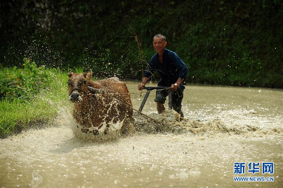 5月20日,在贵州省黎平县尚重镇洋洞村,村民在参加传统农耕展示活动。 新华社发(杨文斌 摄)