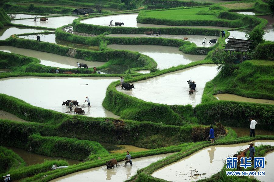 5月20日,在贵州省黎平县尚重镇洋洞村,村民在参加传统农耕展示活动。 新华社发(杨文斌 摄)