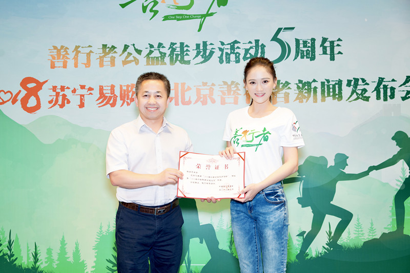 中国网讯 2018年6月12日,善行者公益徒步活动五周年暨2018苏宁易购·北京善行者新闻发布会在国家游泳中心(水立方)举行。中国扶贫基金会副理事长兼秘书长刘文奎、北京市昌平区旅游委党组书记、主任袁丽民,国家新闻出版广电总局电影卫星频道节目制作中心总编室主任董瑞峰、中央人民广播电台社教节目中心主任刘智力、北京交通广播电台副台长罗霄兵、中国扶贫基金会副秘书长王鹏、苏宁易购集团副总裁、苏宁公益基金会副理事长兼秘书长马康,2018善行者年度公益大使演员陈乔恩、2018北京善行者善行大使歌手黄英、2018北京善行者善行大使北京交通广播主持人李嘉佳共同出席此次新闻发布会,一起见证善行者五年走过的“脚步”,开启2018北京善行者。发布会上,中国扶贫基金会进行了善行者的活动回顾,进行战略合作发布,并公布了2018年北京善行者活动进展,为今年的北京善行者活动正式开跑“击响锣鼓”。