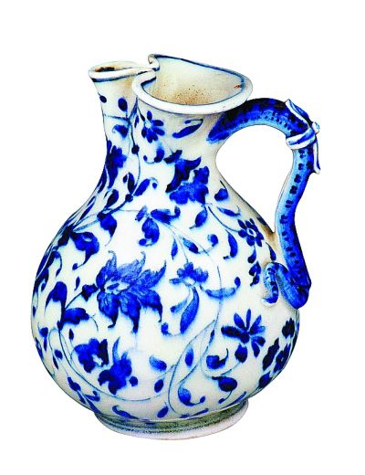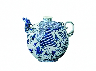图为景德镇窑青花凤首扁壶。本报记者 李韵摄/光明图片
