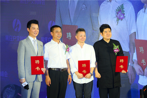 黑庄户乡领导顾洪涛向任鲁豫、王宏伟、陈军、颁发美丽乡村志愿者聘书
