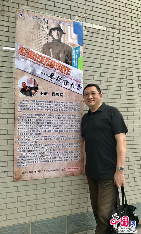 7月6日晩,中央电视台高级编辑、纪录频道副总监冯雪松应邀走进保定学院,为近千名师生讲述了十九年来寻找方大曾的故事。