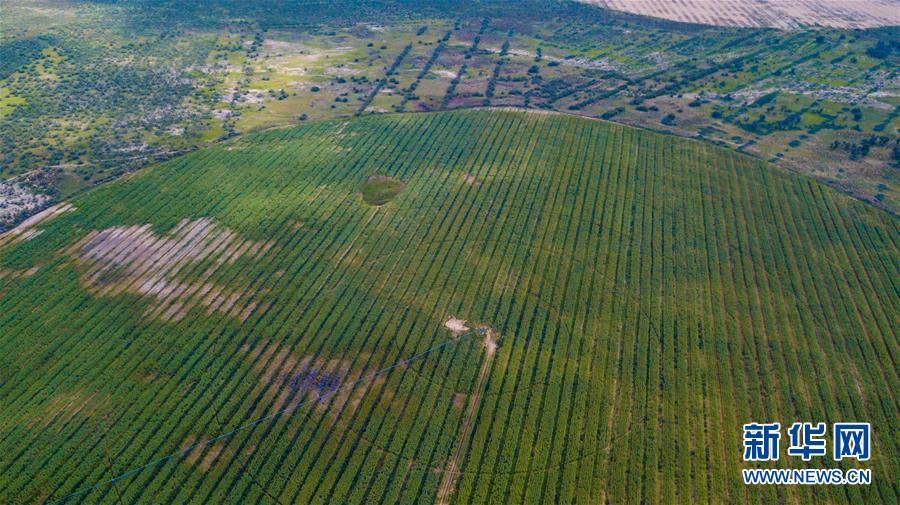 内蒙古达拉特旗白土梁林场的沙棘林(8月1日无人机拍摄)。 新华社记者张善臣摄