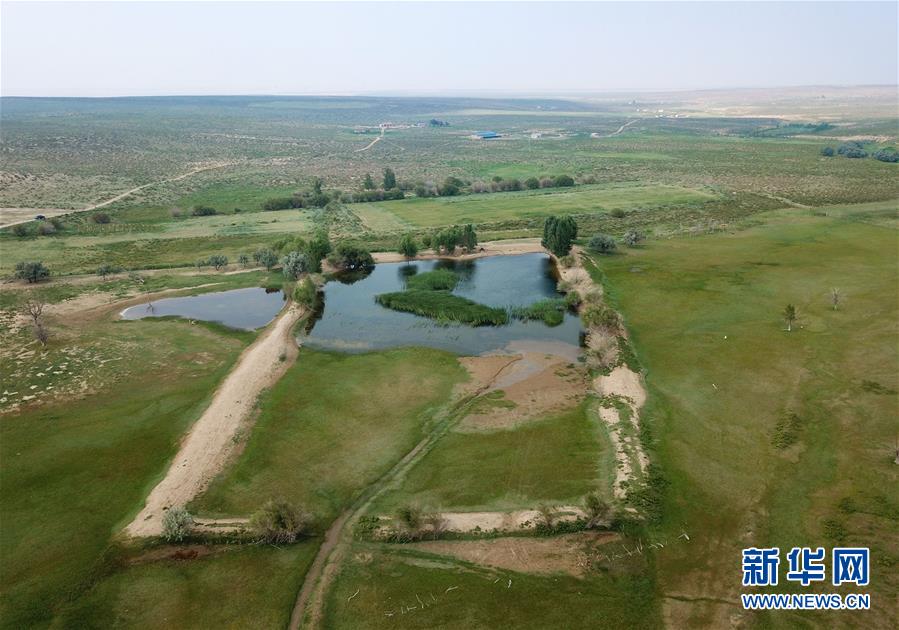 内蒙古杭锦旗沙日召嘎查牧民白音道尔计治理过的库布其沙漠(7月31日无人机拍摄)。 新华社记者邢广利摄