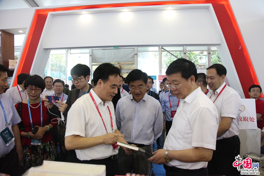 中国外文局副局长陆彩荣向上海市委常委、 宣传部部长周慧琳介绍我局重点图书 (摄影/ 中国网 杨臻)