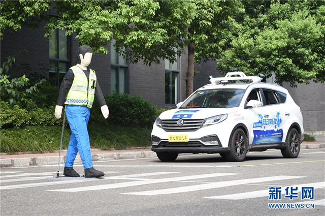 8月19日,一辆自动驾驶汽车在通过“行人横穿马路”的交通场景。