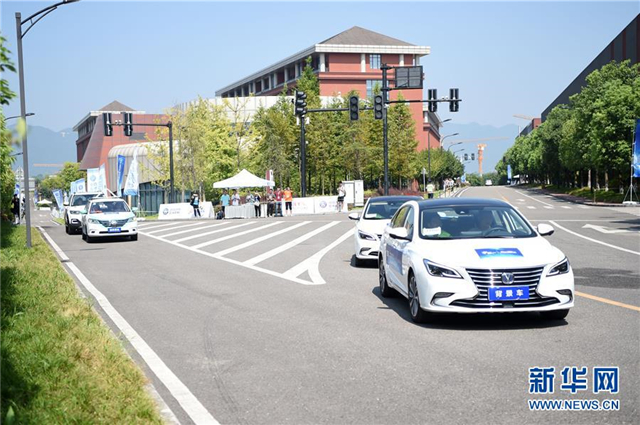 当日,2018年中国国际智能产业博览会自动驾驶城市交通场景技术挑战赛在重庆举行发车仪式。本次挑战赛的场地设置充分还原了山城重庆的交通环境,有环道、丁字路口、隧道、桥梁等,来自全国超过20支专业队伍前来挑战重庆“十八弯”,展示自动驾驶科技。 新华社记者 唐奕 摄