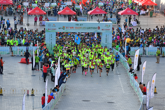 国务院扶贫办国际合作与社会扶贫司巡视员曲天军,北京市民政局副局长董明慧,昌平区旅游委主任袁丽民,北京市昌平区旅游委副主任沈玉江,北京市昌平区政府应急办主任杨财斌,十三陵特区办事处副主任王颖,北京交通广播副台长延安,广州民政局副局长王福军,苏宁易购集团股份有限公司公共事务部副总经理高崑先生,中国扶贫基金会执行副理事长王行最,中国扶贫基金会常务副秘书长陈红涛,中国扶贫基金会副秘书长丁亚冬,中国扶贫基金会副秘书长王鹏等共同出席出发仪式。伴随着清脆的鸣笛声,2752名善行者为爱出发,踏上50公里征程。