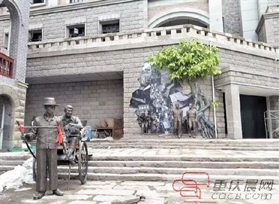 龙门浩老街内根据重庆历史打造的墙绘浮雕