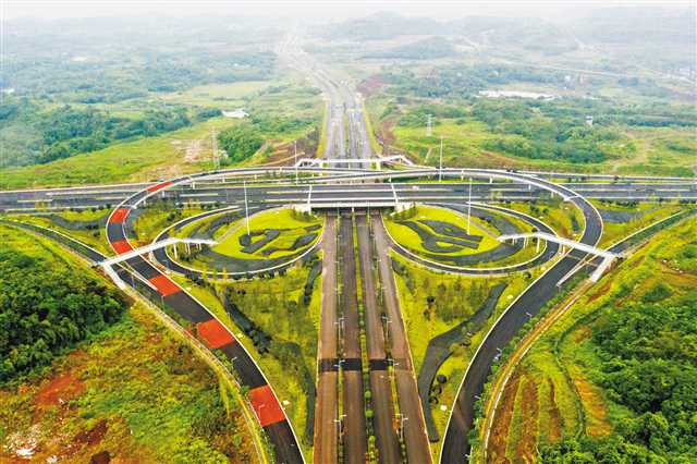9月12日,九龙坡区含谷镇含金村,青龙咀立交主体工程完工,预计今年底通车。青龙咀立交是连接快速路一纵线与高新大道的重要节点,是含谷片区重要的交通枢纽,总投资5.5亿元,占地250余亩。该项目为全互通蝶形立交,包含3座桥梁、快速路一纵线1km主线及立交匝道8条,立交西侧与高新大道相接,东侧经含谷立交与成渝高速相连,快速路一纵线南北贯通,形成东西南北快速干道的互联互通。