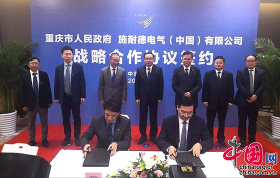 在重庆市市长唐良智的见证下,重庆市政府与施耐德电气达成战略合作