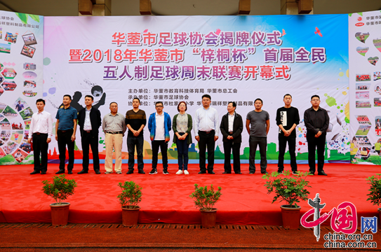 中国网9月17日讯 9月15日,华蓥市足球协会揭牌仪式暨2018年华蓥市“梓桐杯”首届全民五人制足球周末联赛开幕式在华蓥市杜家坪小学举行。华蓥市委常委、宣传部部长王晓梅,市政府副市长刁志强出席仪式。