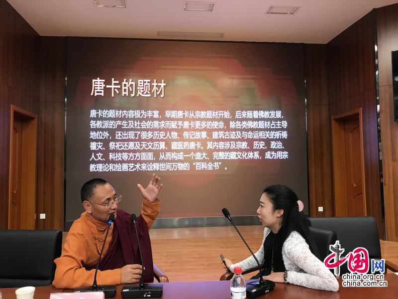 在紧凑高效的开班仪式后,上午10点,“非物质文化遗产唐卡绘画技艺培训”的第一堂课——“符合时代的藏族唐卡艺术”在知行堂准时开讲,开讲老师希热布先生是国家级非物质文化遗产传承人、甘肃省夏河拉卜楞寺摩尼宝唐卡展览中心主任。