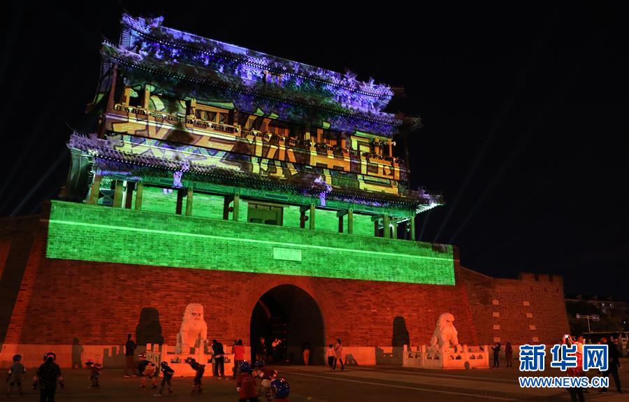 9月29日在北京永定门城楼拍摄的“我爱你中国”灯光秀。9月28日至10月7日,北京世贸天阶、国贸三期、永定门城楼等11处形式多样的“我爱你中国”灯光秀陆续亮起,营造国庆节日喜庆气氛。新华社记者 张晨霖 摄