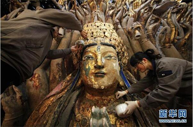 大足石刻千手观音造像修复工程现场。资料图片。新华网 发