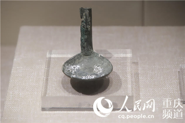 28日,重庆市三峡博物馆。现场展出的“巴蜀图语铜勺”。唐浩 摄