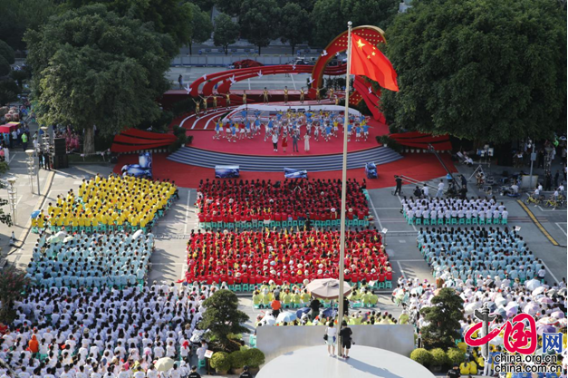 人和街道和大竹林街道各组织了100名广场舞演员,顶着高温辛苦训练十来天的时间,最后登上舞台为歌唱家李丹阳伴舞,成为了整场演出阵容最为整齐庞大的节目。