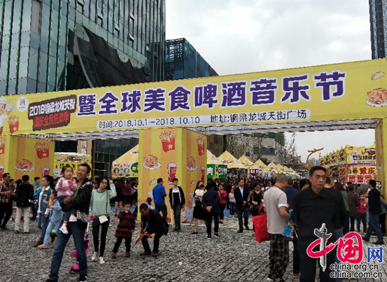国庆假期,重庆市铜梁区龙都天街商圈,全民狂欢季暨全球美食啤酒音乐节让3万市民和和游客感受欢乐的国庆氛围,享受来自全球的各类美食。