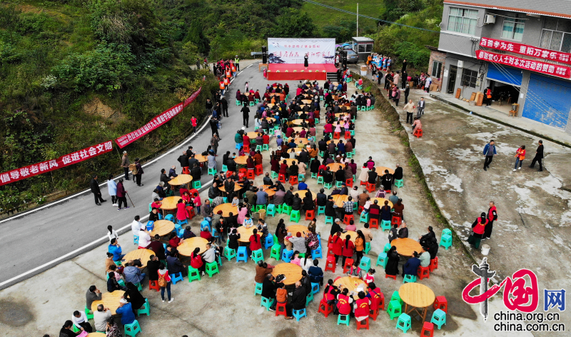 中国网10月15日讯 2018年10月14日,四川省广安市邻水县柑子镇金鼓村300余位60岁以上的老年人,在当地几名致富能手的共同邀请下,汇聚村头观看文艺节目、共进午餐,在开心中喜迎重阳节。(邱海鹰 刘南贤)