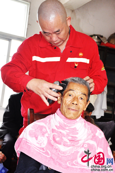 201队的职工们嘘寒问暖,为老人们整理衣物,修剪头发,陪同老人打牌娱乐,打扫敬老院的卫生。“这是我们院里最热闹的一天,欢迎中石油的客人常来做客!”76岁的老人黄文明,紧握着物探人的手,脸上的笑意一直没有淡去。(曾涛)