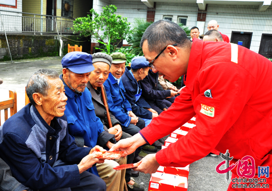 中国网10月18日讯 “感谢中石油,对我们老人的关怀和慰问,谢谢你们,谢谢!”近日,黎家乡崔家岩村敬老院的老人黄文明接过礼物感谢到。