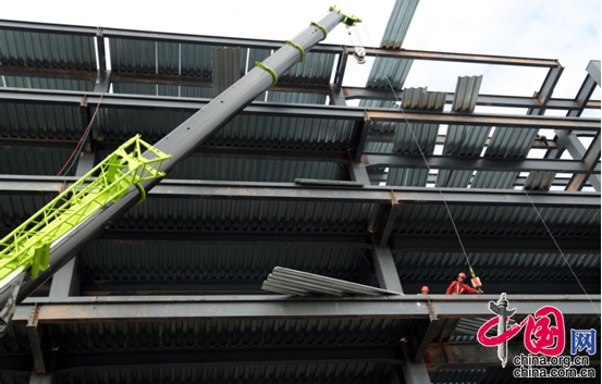 中国网10月23日讯 近日,在忠县工业园区乌杨新区12万平方米标准厂房项目建设工地,建筑工人在吊装钢结构楼板。据悉,该项目主要由厂房和地下车库组成,是忠县工业园区大力培育壮大中小企业的重要平台。目前,已完成建筑业产值1.8亿元。其中1号楼在进行外墙装饰板施工,2、3、4号楼主体及室内外装修已完成,5号楼主体结构施工完成,6、7号楼主体结构框架施工完成。该项目建成投用后,将有力推动县工业园区的中小企业及信息产业发展壮大。(通讯员 赵军摄)