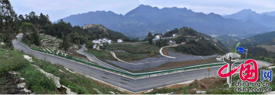 在大进镇,通往杉园村的山道素有“天路”之称,大部分路段都修筑在峭壁边缘。家住杉园村的贫困户童友辉眼睛有残疾,丈夫李均恒去年做了尿毒症手术,不能干重体力活,日子过得十分紧巴。今年,进村公路全部硬化后,老板纷纷进山流转村民土地种植药材,夫妇俩在家门口就找到了工作,成了村里中药材合作社的管理人员和守林人。“我家流转土地一年有1400元租金,加上给合作社看林子的工钱和股权分红,一年挣3万元没问题。”童友辉高兴地说。