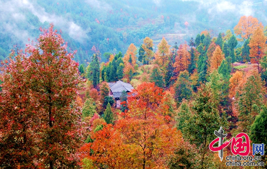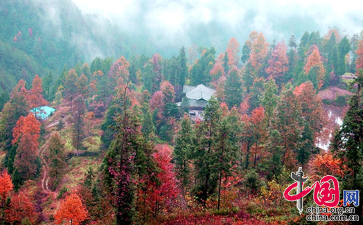 时间虽然已进入初冬,这里仍然秋色难褪,呈现在人们眼前的是红叶漫山、层林尽染的景观。要是遇上雨雾天气,浓雾缠绕于山头,青山、白雾、红叶更加美不胜收。(李诗素)