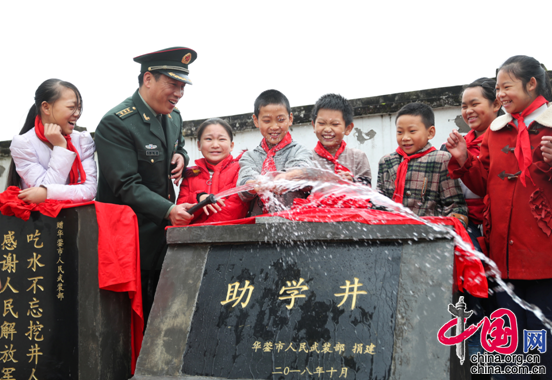中国网11月15日讯 11月14日,由革命老区四川省华蓥市人武部在庆华镇庆合初中捐建的“助学井”竣工并投入使用。据悉,庆合初中是华蓥市最边远的乡村学校,由于地理条件所限,以前饮用水全靠校园一口逐渐枯竭的老井和平时储蓄的雨水,虽然镇上限时送水,但也是杯水车薪,全校730多名师生的饮用水严重缺乏。在脱贫攻坚工作中联系庆华镇的人武部得知情况后,于今年9月上旬捐资2万余元,在学校操场边挖掘了一口日出水量近30吨的机井,解决了该校师生饮用水难题,演绎了老区军民的魚水情。(邱海鹰 杨欧阳)