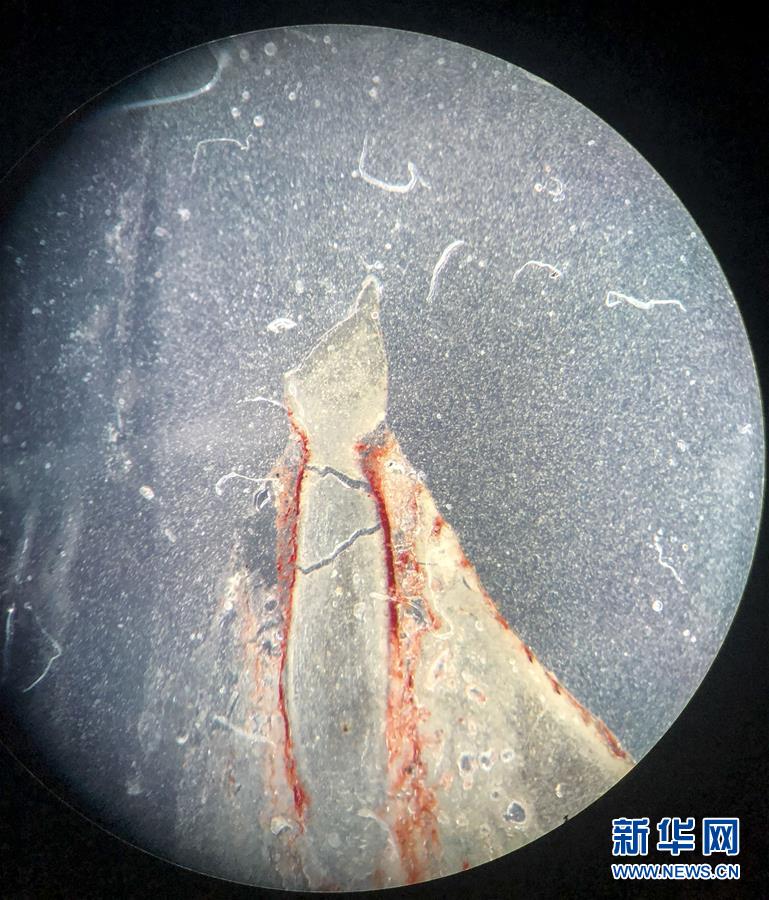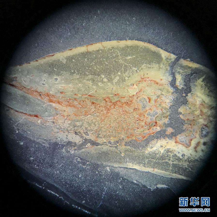 这是显微镜下的“长春龙”牙齿化石切片(11月20日摄)。新华社记者 许畅 摄