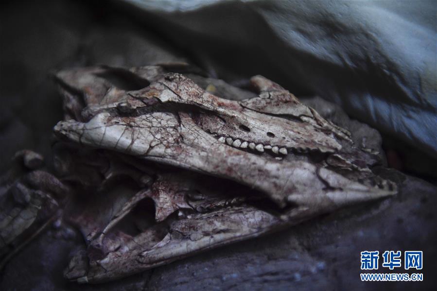 这是11月20日拍摄的“长春龙”头骨化石。 新华社记者 许畅 摄