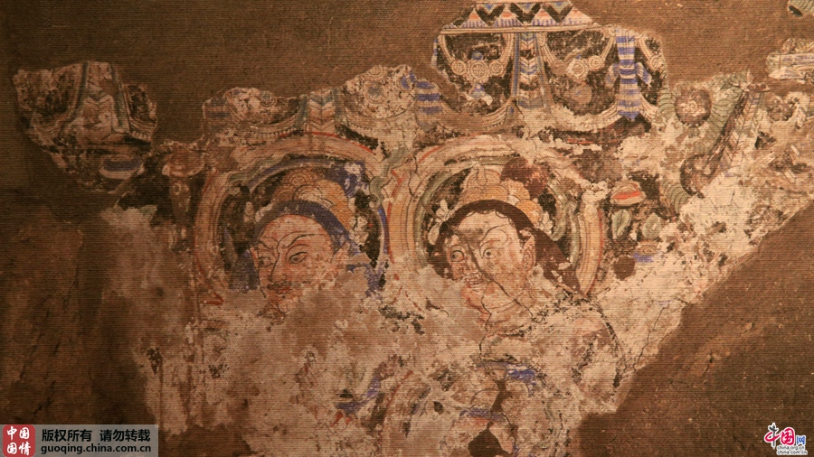编号E102龛北壁绘护法天王壁画